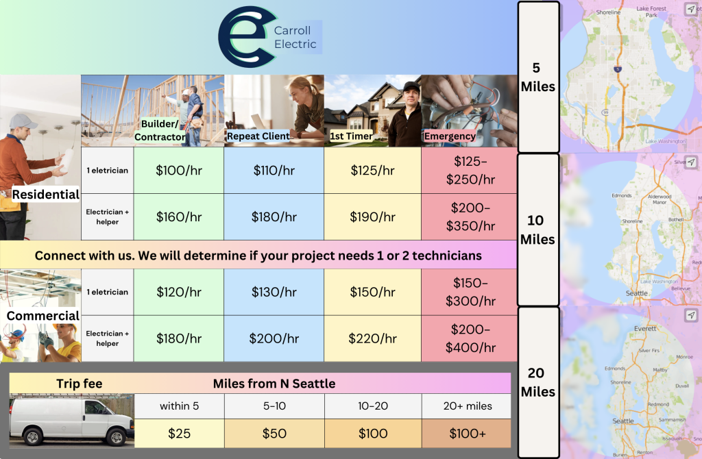 Posted on ITpapersTrustindex verifies that the original source of the review is Google. Great service and fast responses.Posted on Christine UTrustindex verifies that the original source of the review is Google. Carroll Electric did a great job! They were knowledgeable, efficient, hardworking, and nice to work with. I would definitely hire them again.Posted on Ali BTrustindex verifies that the original source of the review is Google. I was so impressed with Cameron and his work. He fitted me in ahead of schedule which was extremely helpful. He explained how he was going to go about the work. got on with it very quickly. He was very polite and delightful to work with and I am so grateful for his help. I recommend him highly.Posted on Alice NTrustindex verifies that the original source of the review is Google. He was skilled, efficient and worked clean. Would definitely hire again!Posted on Floor ProsTrustindex verifies that the original source of the review is Google. Great experience! They fixed a wiring issue fast and explained everything clearly. Honest pricing and quality work. Highly recommend!Posted on Alex AdamTrustindex verifies that the original source of the review is Google. Carroll Electric upgraded our panel and installed new lighting—super professional, on time, and everything works perfectly!Posted on Maggie NTrustindex verifies that the original source of the review is Google. The best electrical contractor ive ever worked with. Very quick to understand our needs and perform the service work easily!Posted on Nancy ATrustindex verifies that the original source of the review is Google. Super fast response. Would use them again!.Posted on Morning CoffeeTrustindex verifies that the original source of the review is Google. Professional, quick response, reasonable price.Posted on Thomas TTrustindex verifies that the original source of the review is Google. Awesome local business with outstanding customer service. I recently experienced a power outage during the recent Seattle heat wave, and Carroll Electric was the only company I contacted that prioritized my situation and had a technician at my home within the hour. Truly impressive responsiveness and professionalism. Highly recommend!